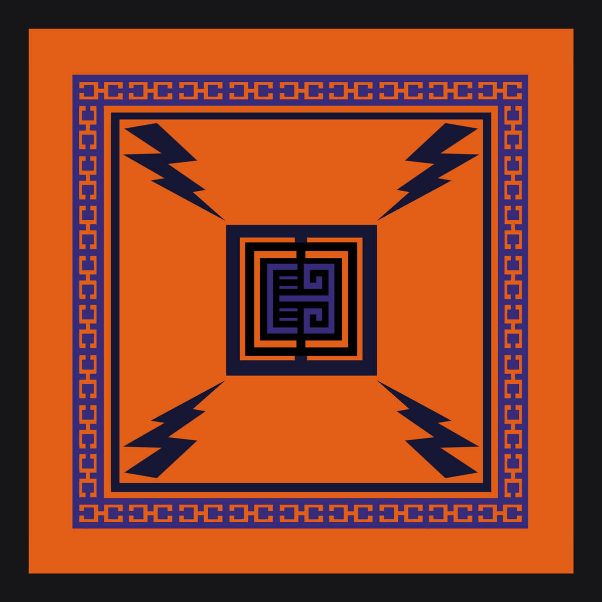 Elegant mini silk scarf from our Zeus clollection featuring a pattern with thunders (Greek: Κεραυνός/Keravnos) in a meander inspired frame. Thunder was one of Zeus’ weapons powered by the sky and symbolizes energy, strength and power.
