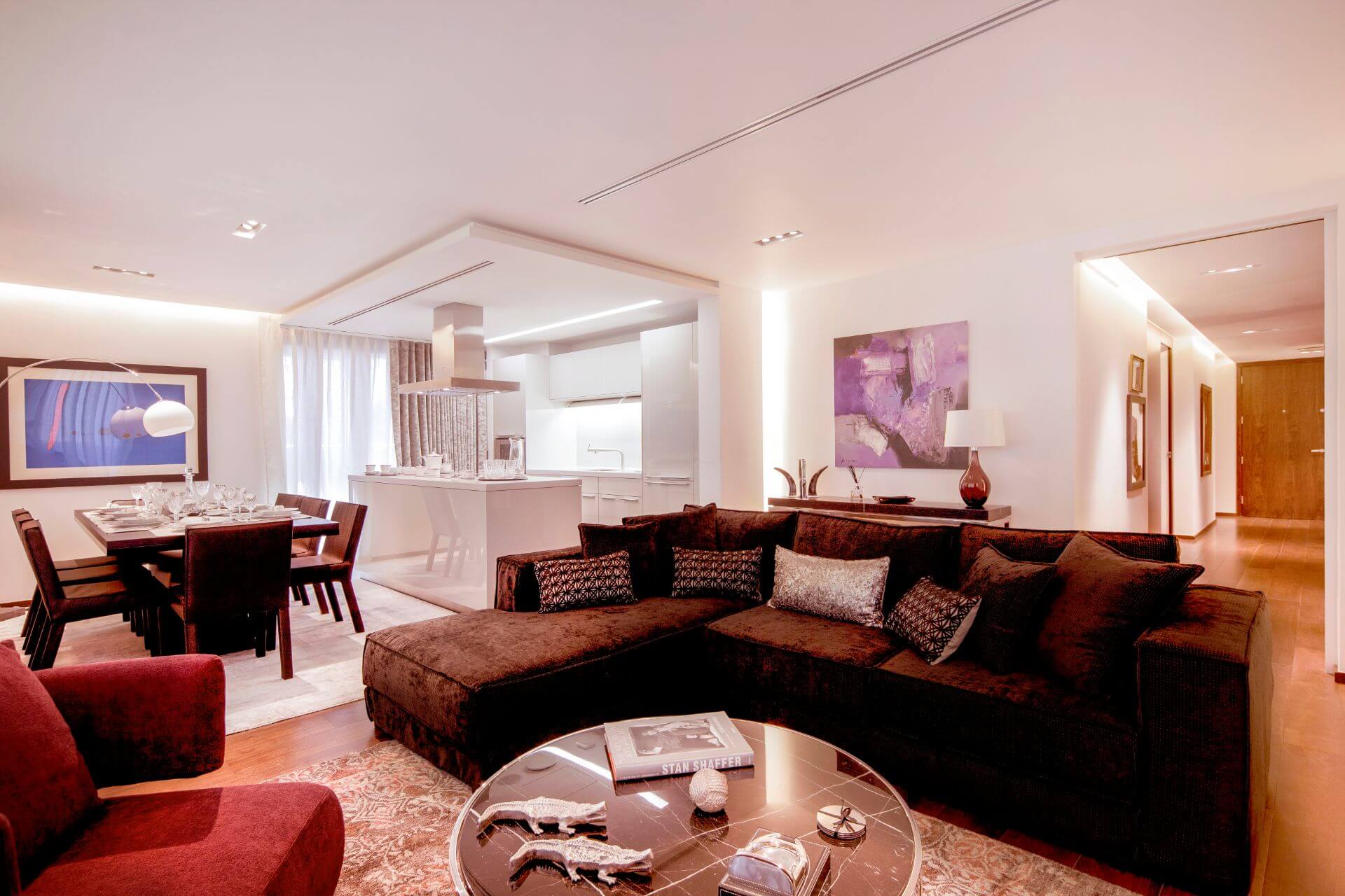 This two-bedroom modern apartment in Park Road Complex, carries a youthful aura enhanced by rock-chic elements and a clear design that evokes a feeling of the swinging sixties in their natural, authentic form.